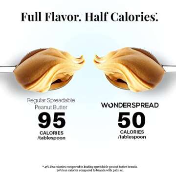Wonderspread Half-Calorie Gourmet Peanut Butter, Only 100 Calories per 2 tablespoons, 1g Net Carbs, No Palm Oil, 12 Oz
