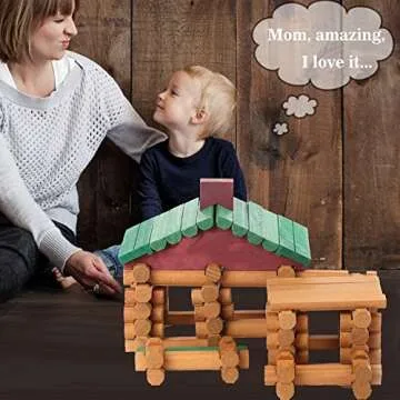 Wondertoys 90 Pieces Classic Wood Cabin Logs Set, Building Log Toy for Children, Farm House Construction Educational Toys for 3 4 5 6 Years Old
