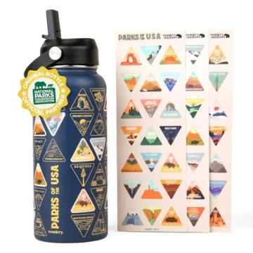 Wondery National Parks Water Bottle: 32 oz Stainless Steel with 63 Waterproof Stickers