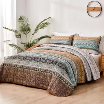 WONGS BEDDING Boho Fall Queen Quilt Set, Brown Bohemian Queen Quilt Bedding Set, Lightweight Microfiber Bed Decor Bedspread for All Season 96"x90"(3 Pieces)