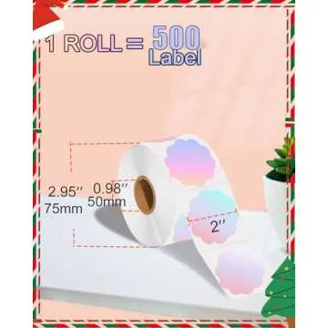 Wonlabel Flower 2 x 2 Thermal Labels, Multipurpose Round Thermal Sticker Labels for Business and Home, Circle Direct Thermal Labels for DIY Logo Design, Thanks Card, 500 Labels/1 Roll, 3 Color
