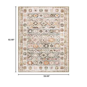 Wonnitar Boho Washable 5x7 Rugs, Moroccan Trellis Living Room Area Rug, Non-Slip Large Rug for Bedroom, Non-Shedding Western Ultra-Thin Floor Carpet for Kitchen Closet Dorm (Khaki/Multi,5'x7')