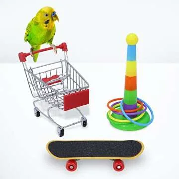 Wontee Bird Toys Mini Shopping Cart Skateboard Ring Toy for Playing and Training of Budgies Cockatiels Caique Quaker Parrot Conures (3 Pack)