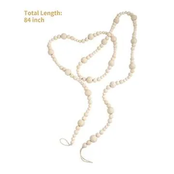 Wood Bead Garland Without Tassels, 84 Inch Natural Wooden Beads Garland, 7 Feet Handmade Boho Decor, Coffee Table Decor