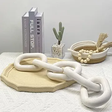 Wood Chain Link Decor | Hand Boho Carved Decor for Table, Shelf Decor Accents Rustic Farmhouse Aesthetic 5 Link Chain Knot Decor Home Living Room, Bedroom, Entryway Coffee Table Decor (White)