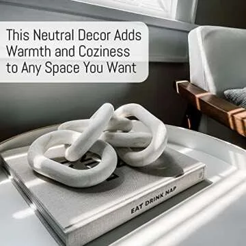 Wood Chain Link Decor with Boho Wall Basket, Aesthetic Chain Decor Set, Decorative Wooden Chain Link Decor, Hand-Made Chain Decor for Coffee Table, Wood Links Home Decor for Inspiration (White)