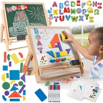 Wood Double-Sided Tabletop Easel - 80 pc Activity Set for Kids with Letters & Shapes