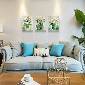Wood grain Still life flowers Watercolor painting Canvas Wall Art for kitchen 3 piece Wall Decor for dining room bedroom Decorations Canvas Prints Home Decoration for Living Room Poster Artwork