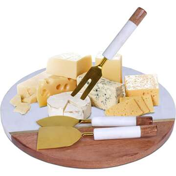 Elegant Wood Marble Cheese Board with Cutlery Set – Perfect for Entertaining