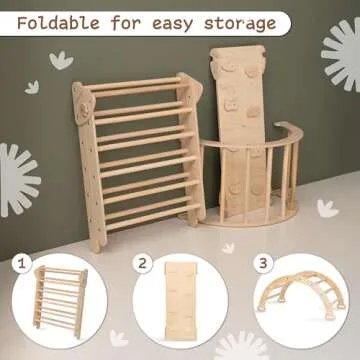 WoodandHearts Montessori Climbing Set, 3 Piece Climbing Gym, Indoor Climbing Gym, Set for Toddlers, Climbing Toys for Toddlers 1-3 Inside in Natural Wood Color (2-6 Years)