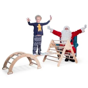 Discover the perfect blend of safety, fun, and aesthetic charm with the WoodandHearts Montessori Climbing Set, designed specifically for children aged 2 to 8. This remarkable climbing structure, made from high-quality natural wood, offers a splinter-free and safe experience that enhances any home or classroom. The set is an all-in-one solution for active play, featuring a foldable triangle climber with a slide, a ramp, and an arch that fuel your child's imagination while encouraging physical...