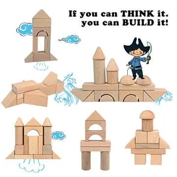 Wooden Building Blocks Set for Kids - Stacker Stacking Game Construction Toys Set Preschool Colorful Learning Educational Toys - Geometry Wooden Blocks for 3+ Year Old Boys & Girls