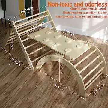 Wooden Climbing Toy for Kids Set - 4 in 1 Triangle Set with Ramp and Arch Climber, Toddlers Foldable Ladder, Safe and Sturdy for Rocking Arch, Climbing Ramp, Climbing Arch, Slide, and Climb Triangle