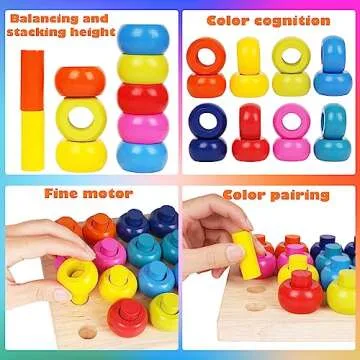 Wooden Color Sorter Stacking Rings Board Montessori Toys Wooden Pegboard Stacking blocks Stacker Rings Board Counting Toys for Toddlers Puzzle Games for Shape Sorting Educational Learning Toys