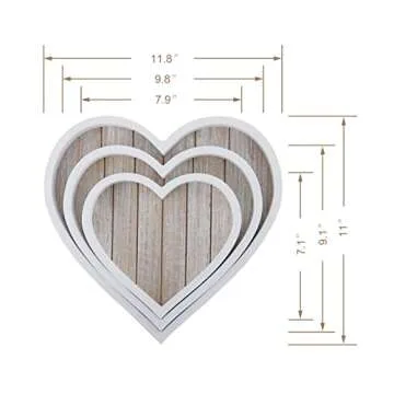 Wooden Heart Tray for Ottoman Coffee Table Tray Décor Set of 3 (Heart)