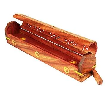 Wooden Incense Stick & Cone Burner Holder Coffin With Storage Compartment Organic Eco Friendly Ash Catcher Agarbatti Holder Rustic Style For Meditation Yoga Aromatherapy Home Fragrance Products