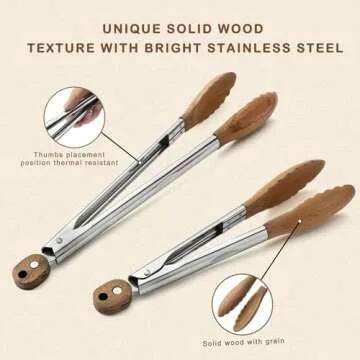 Wooden Kitchen Cooking Tongs Wooden Tongs 2-Piece Set (9-Inch/12-Inch Walnut) Wooden Kitchen Tongs Grilling and Salad Tossing
