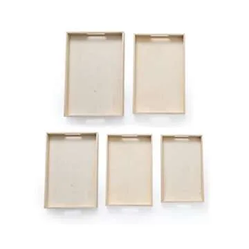 Wooden Living - Wooden Tray/Wood Trays | Serving Tray with Handles, Unfinished Large/Small - Montessori Crafts, Decor, Paint Craft Crates, Food, Kitchen Coffee Set [Bandejas de Madera para Desayuno]…