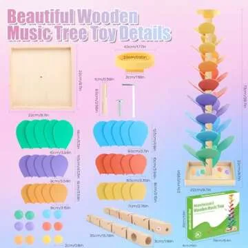 Show more Introducing the 49PCS Wooden Marble Run Music Tree Toys, an enchanting toy that brings joy and learning together in a vibrant way. This upgraded musical tree set offers an engaging experience for children, featuring 30 colorful leaves available in six unique colors: green, blue, purple, red, orange, and yellow, along with 12 delightful multicolored balls. Each element is designed with safety in mind, made from premium wood that is non-toxic, odorless, and environmentally friendly.