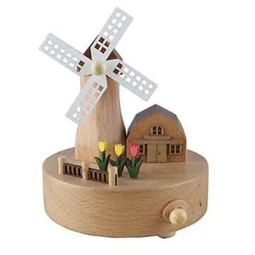 Show more Discover the enchanting charm of the Takefuns Wooden Musical Box, an exquisite blend of traditional craftsmanship and contemporary design that captures the essence of nostalgia and joy. This beautifully crafted music box is not just an ordinary toy; it's a delightful centerpiece that boasts intricate details like a quaint countryside windmill and adorable magnetic cars and trains that rotate around it. With every turn of the winding spring, the sweet melody of the "Castle in The Sky" fills the air, transporting you to a world of cherished memories. Made using sustainable forest resources, this music box prioritizes the environment without sacrificing style and function, making it an ideal gift for any occasion.