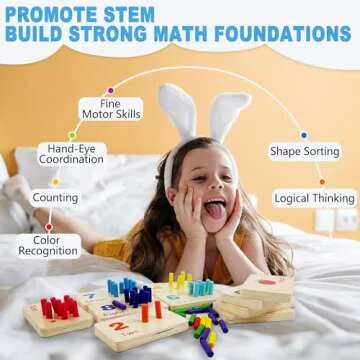 Wooden Number Counting Peg Board, Montessori Kids Math counters, Montessori Counting Toys for 3 4 5 Years Old Kids, Toddler Preschool Learning Toys, Kindergarten Homeschool Autism Learning Materials