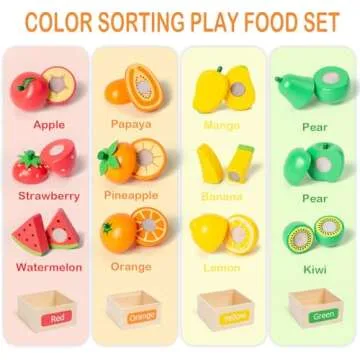 Show moreIntroducing the Wooden Play Food Sets for Kids Kitchen Accessories, a delightful 34-piece collection designed specifically for joyful play and learning! This charming set features 24 intricately crafted wooden food items, including an array of vibrant fruits and vegetables, complemented by two durable wooden knives, plates, placemats, and sturdy storage boxes. With a focus on Montessori principles, this play food set not only fosters creativity but also enhances essential skills such as hand-eye coordination and color recognition in a fun and engaging manner.