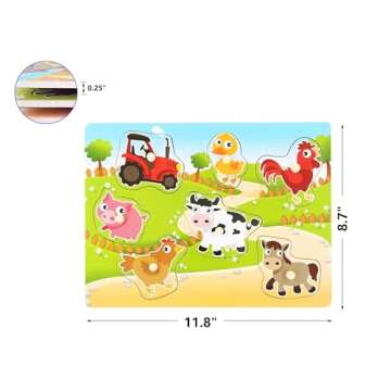 Why You Will Love This Product?The Wooden Puzzles Farm Chunky Baby Puzzles Peg Board offers more than just entertainment; it provides a pathway to learning through play. As your child engages with this puzzle, they strengthen their hand-eye coordination and fine motor skills while exploring vibrant colors and delightful farm graphics. Parents express delight in how this puzzle promotes interaction and communication between caregivers and toddlers, making puzzle time a cherished bonding experience. You'll love watching them grow and learn, piece by piece!
