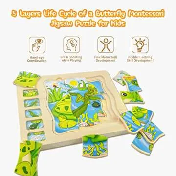 Wooden Puzzles for Kids Age 4-8, 5 Layers Life Cycle of a Frog Montessori Jigsaw Puzzle for Kids, Children Preschool Learning Educational Puzzles Toys for Boys and Girls