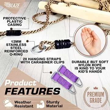 Wooden Rope Ladder for Kids - Playset Ladder for Ninja Warrior Obstacle Course Accessories | Rope Ladder for Treehouse Swing Set Bunk Bed | Playground Ninja Obstacles Swing Hanging Ladder