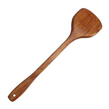Wooden Spatula, 2Pcs Long Handle Flat Non-Stick Kitchen Cookware for Mixing and Cooking, 15.35”