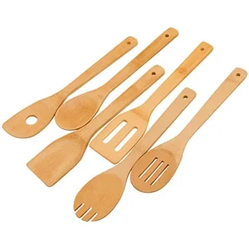 Premium 6-Piece Bamboo Wooden Spoons Set - Ideal for Non-Stick Cookware & Perfect Housewarming Gift