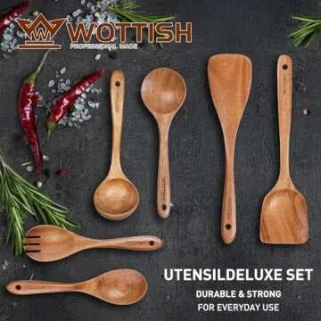 Wooden Spoons - Wooden Spoons for Cooking, Wooden Utensils for Cooking Natural Teak Wooden Kitchen Utensils Set,6-Piece Wooden Cooking Utensils(A06)