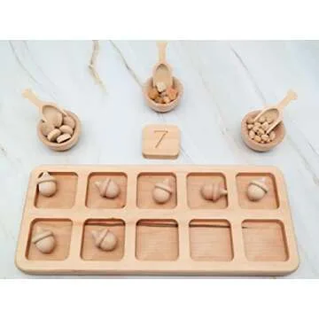 The Wooden Ten Frame for Sorting and Counting is a beautifully crafted Montessori educational toy designed to enhance your child’s fine motor skills and counting abilities. Made from high-quality maple hardwood, this sorting board is both durable and stylish, making it a perfect addition to any playroom or classroom environment. Coated with a blend of pure food-grade mineral oil, beeswax, and carnauba wax, it not only looks attractive but is also safe for children. Each board measures 13.25...