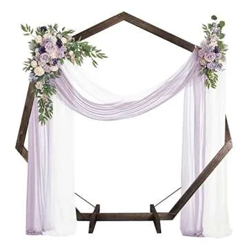 Show more Introducing the ultimate addition to your special events and celebrations – our stunning heptagonal wedding arch. This exquisite wooden arch not only elevates your ceremony but also enhances all significant moments in life, making it perfect for weddings, parties, and various festive occasions. Crafted with high-quality materials, this arch stands out due to its robust construction, featuring widened and thickened dimensions for added stability and strength. Each plank measures 2.9 inches wide and 1.1 inches thick, ensuring that your arch is sturdy enough to hold decorations and withstand light outdoor conditions.