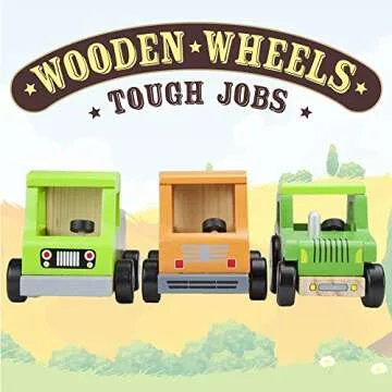 Wooden Wheels Tough Jobs Pack: Natural Beech Wood Tractor, Pickup Truck, and Cement Mixer