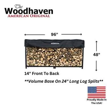 Show more Introducing the Woodhaven 8 Foot 1/2 Cord Firewood Log Rack, a premium solution for firewood storage that combines durability with beautiful design. This robust log rack, expertly crafted in the USA by the esteemed Alexander family since 1927, offers an exceptional way to manage and safeguard your firewood. Perfectly constructed from heavy-duty steel, it stands tall against various weather conditions while providing an attractive addition to your outdoor space.