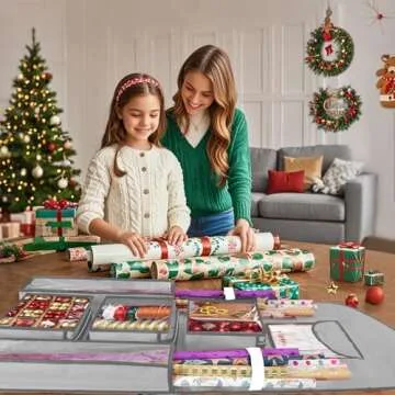 Show moreIntroducing the Woodoulogy Hanging Gift Wrapping Paper Storage, the ultimate solution for all your wrapping needs! Measuring a generous 40 inches in length and 17 inches wide, this innovative organizer effortlessly accommodates an extensive collection of gift wrap, ribbons, and other essential supplies. Its double-sided design features two compartments specifically tailored for rolls of up to 40-inch gift wrap, ensuring that both your unused Christmas bounty and your birthday décor are kept in perfect condition. Experience the ease of organizing with its four square bins, envelope bag, pockets for tags and tape, and much more, allowing you to effortlessly store everything from ribbons to small decorations.