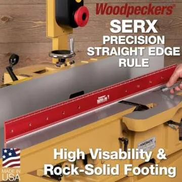 Show moreThe **Woodpeckers SERX Precision Straight Edge Tool** is an essential tool for any woodworking enthusiast or professional. Crafted with meticulous attention to detail, this 24-inch aluminum straight edge tool guarantees remarkable accuracy with a tolerance of just **0.0015" per foot**. Whether you're setting up machinery or checking the flatness of your workspace, this straight edge becomes your trusted companion. The laser-engraved scale provides clear visibility, making it easy to measure with precision and confidence. Not only does it perform exceptionally well, but its vibrant anodized red coloring also stands out, adding a touch of aesthetic appeal to your toolbox.