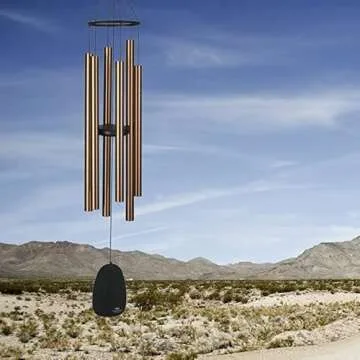 Show more Experience the tranquil beauty of music with this exquisite pair of wind chimes, meticulously developed by pro musicians for their serene sound. The soothing tones played from these stunning chimes create a harmonious atmosphere in any outdoor setting. With their thoughtful pentatonic scale, they're designed to fill your garden, patio, or front porch with a delightful melody that resonates with peace and calm. Crafted by Woodstock Chimes, a brand renowned for its quality, these outdoor wind chimes stand at an impressive 44 inches. This prominence makes them not only a functional musical instrument but also an elegant piece of decor that can enhance any space.