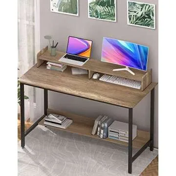 WOODYNLUX Computer Desk for Home-Office with Storage-Shelves - Modern Simple Style Metal Frame Laptop Notebook PC Study Writing Student Makeup Table Desk with Monitor Stand Footrest, Easy to Assemble.