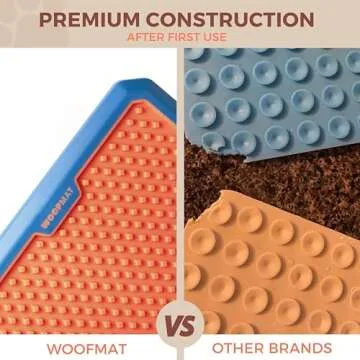 When compared to similar pet products on the market, the WoofMat Chew Resistant Lick Mat excels due to its unique material and design. Unlike traditional silicone mats, its TPR/PP construction ensures durability against chewing, while the secure suction cups outperform competitors, preventing messes during use. Its stylish appearance is an added bonus that many generic mats lack. This means while other mats might serve their purpose, the WoofMat combines aesthetics with significant functionality, providing a superior experience for both the pet and their owner.