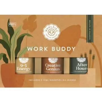 Show moreThis innovative Woolzies Work Buddy Collection is designed to transform your workplace into a haven of productivity and relaxation. Comprising three meticulously crafted blends—5-9 Energy, Creative Genius, and After Hours, this set caters to the dynamics of a modern work environment. Each oil is 100% pure, undiluted, and boasts the highest quality ingredients, making them a staple in anyone's daily routine. Whether you need a burst of energy to tackle your to-do list, enhanced creativity for brainstorming, or a calming atmosphere after a long workday, this collection has got you covered.