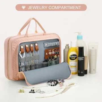 WOOMADA Travel Toiletry Bag with Jewelry Organizer, Makeup Bag & Hanging Hook