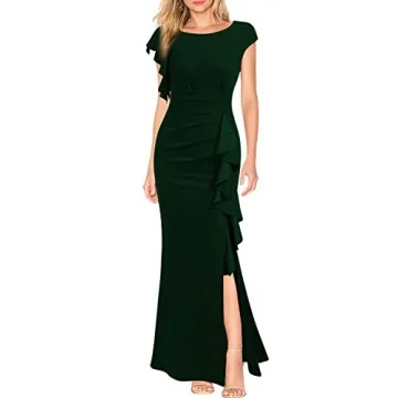 WOOSEA Women's Split Bodycon Mermaid Evening Cocktail Long Dress in Green