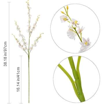 Show moreDiscover the exquisite beauty of our Wootkey White Orchid Artificial Flowers—an enchanting addition to any decor. Crafted from soft silk material with sturdy plastic poles, these faux orchids embody the elegance and warmth of real flowers without the upkeep. Each stem measures a striking 38 inches, making them perfect for tall vases that demand a statement piece. Handcrafted details ensure that the tips and stamens are vivid and realistic, providing a natural allure that is sure to impress.