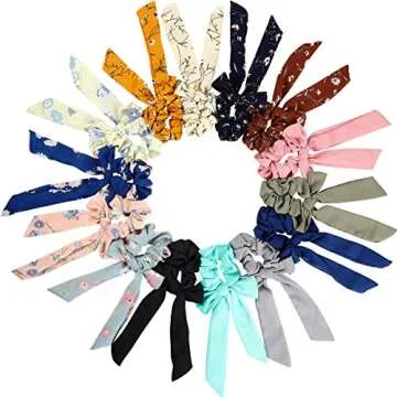 Wooyaya 14Pcs Chiffon Hair Scrunchies Bowknot Ribbon Elastics Hair Bands Scrunchy Flowers and Solid Colors Hair Rope Ties Hair Bow Ponytail Holder Accessories for Women Girls