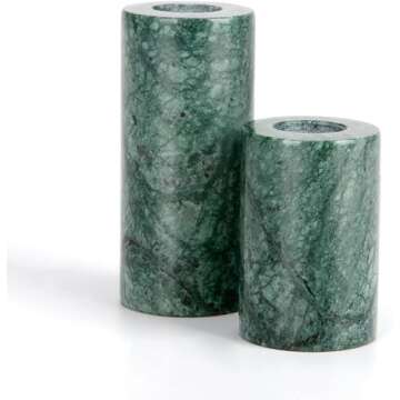 WORHE Candle Holders True Natural Marble with 0.35" Thick, Set of 2 Decorative Candlestick Holder for Wedding Dinning Party, Premium Candle Stand for 3/4 inch Thick Candles Color Green (ZT003)