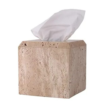 Show more Introducing the WORHE Tissue Box Cover: Made from pure, natural Travertine stone, the WORHE Tissue Box Cover combines elegance and functionality in one exquisite piece. Weighing in at a stout 5.65 lbs, this heavy-duty holder is designed to stay put while you effortlessly dispense tissues with one hand. Unlike flimsy alternatives, the solid structure ensures that it won’t tip over, making it perfect for any setting—from your bathroom to your living room. With dimensions of 5.5" x 5.5" x 5.5", it fits most standard tissue boxes while its unique marble patterns make it a stunning statement piece that adds sophistication to your decor. Available in four beautiful colors, each natural stone piece is uniquely hand-carved, showcasing the timeless beauty of Travertine. Experience both style and durability with this must-have accessory for your home.