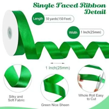 woric Green Ribbon 50 Yards - Versatile Satin Ribbon for Gifts and Crafts