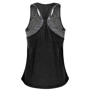 Workout Tops for Women with Built in Bra Tanks Activewear Yoga Running Shirt (Black#011hp, M)